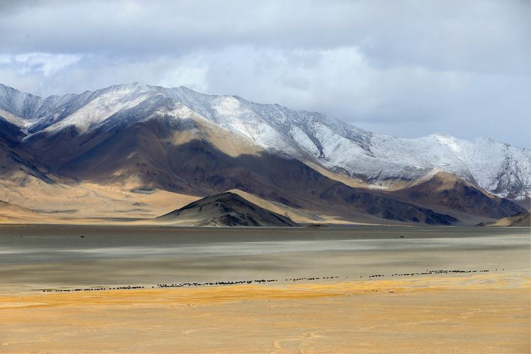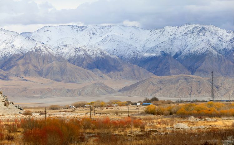 從喀什到喀什庫爾干縣沿途風(fēng)景最為秀麗多姿,紅山、白雪,金黃色的草地,象珍珠一樣灑滿草地的牛羊.......