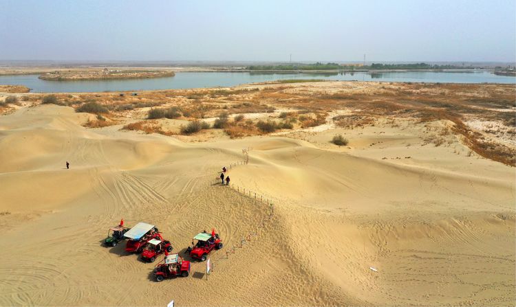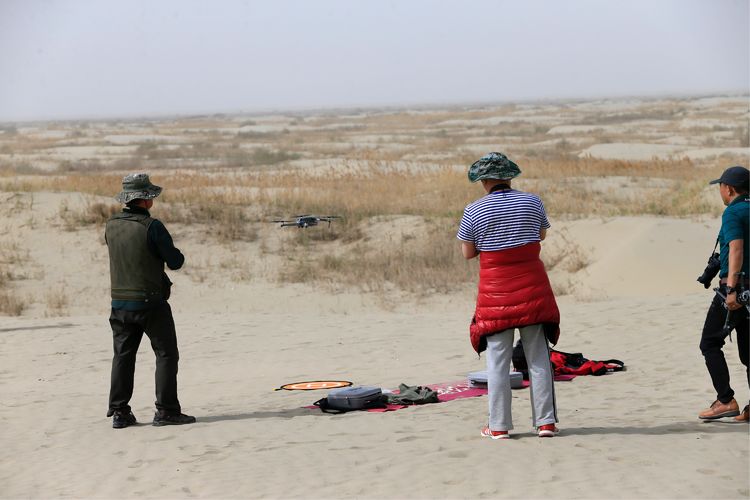 這次參加新疆采風(fēng)的成員中有六位攜帶了無人機(jī),一個個雄心勃勃,計劃在拍攝中大顯身手,以上帝的視角展現(xiàn)新疆絢麗的風(fēng)光??墒牵捎谂臄z路線多在邊防區(qū)域,也或是景區(qū)怕發(fā)生炸機(jī)傷人事故,大多禁飛無人機(jī)。在廣袤無際的沙漠中,人煙稀少,游客無幾,景區(qū)內(nèi)對無人機(jī)沒有限制,大家紛紛亮出無人機(jī),盡情地飛翔吧。