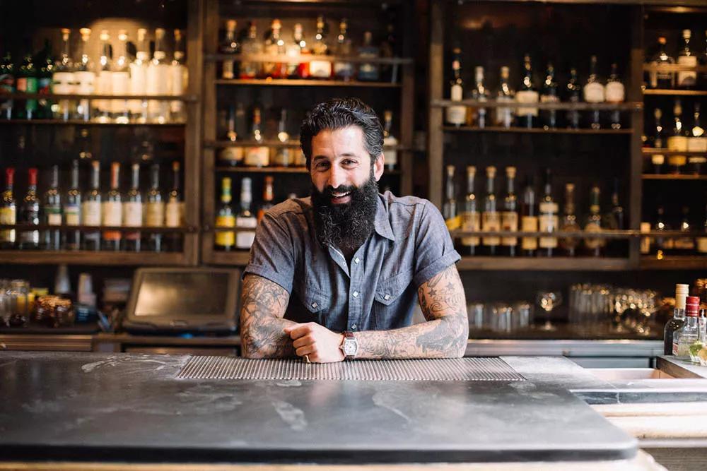 大胡子、紋身、油頭,當(dāng)代Vintage調(diào)酒文化下無數(shù)調(diào)酒師開始模仿的裝扮,照著這個(gè)方向去找,還真找到一位和杜爾馬茲老師一個(gè)模子刻出來的調(diào)酒大咖: