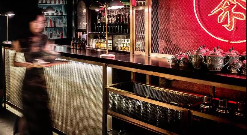 被廣東話的綠色霓虹燈點(diǎn)燃,從豪華的紅色窗簾反射出來,創(chuàng)造出一個(gè)飽和的Nicolas Winding Refn電影房間,在華麗的設(shè)計(jì)之中,茶室之旅中有很多新奇之處。菜單印在報(bào)紙上。有來自臺(tái)北,新加坡和香港的老式乙烯基唱片的自動(dòng)點(diǎn)唱機(jī)出現(xiàn)60年代的曲調(diào)。這里有著中國飲料,被稱為“中國伏特加”,還能找到與花生和枸杞的新奇搭配。