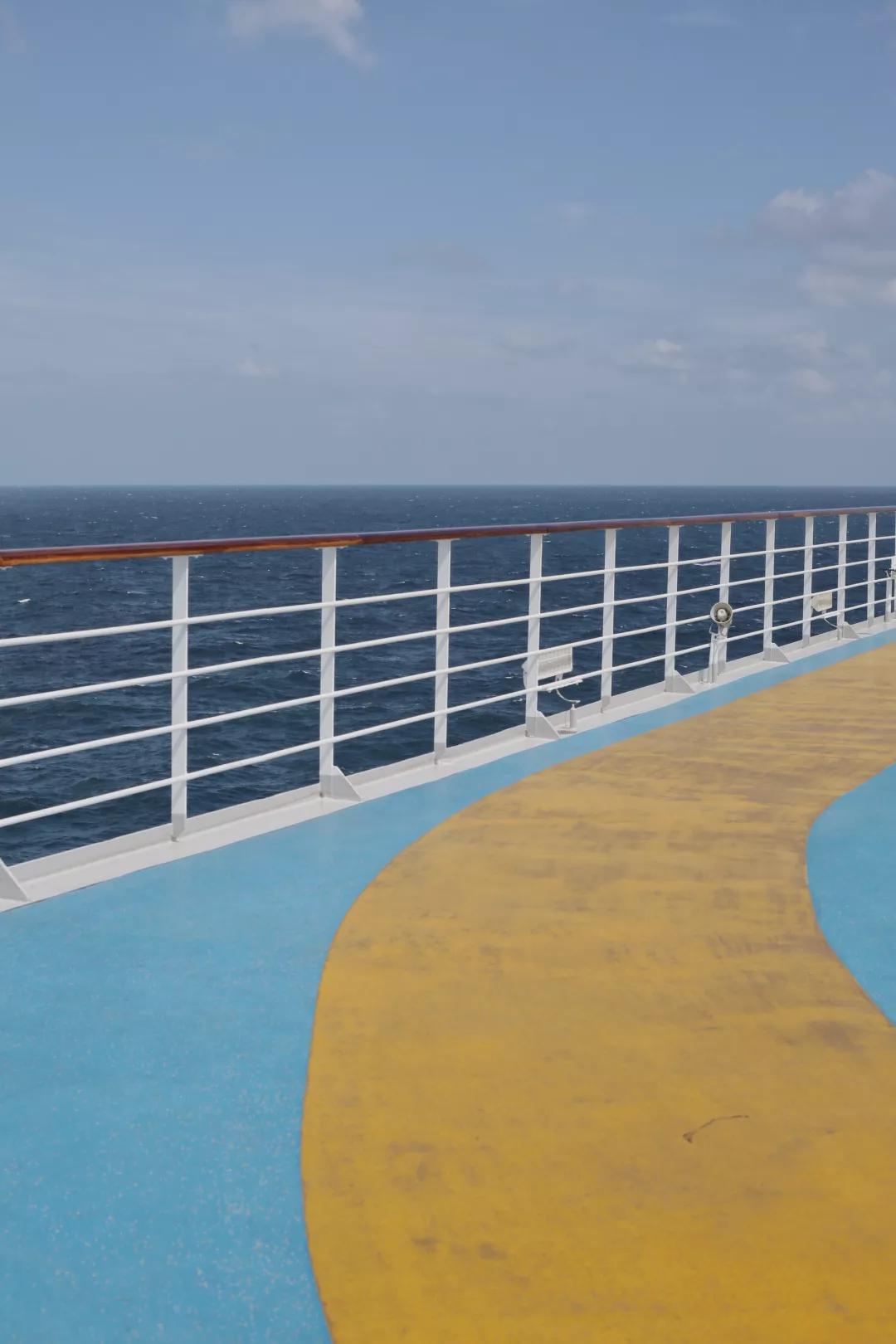 在郵輪上的第五日,旅程已經(jīng)接近尾聲,早上醒來的時候,從舷窗望出去,海上的天空是將欲破曉的深藍,心里突然涌起上甲板看日出的念頭。