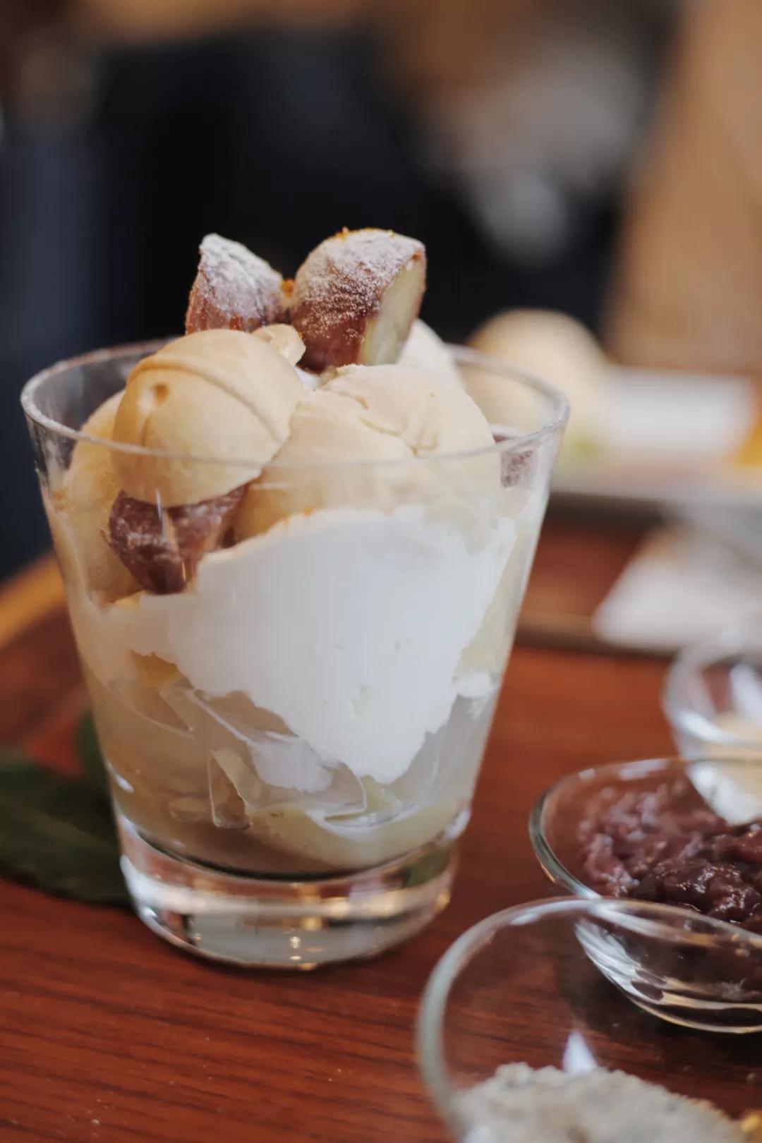 對甜品毫無抵抗力的我們當然沒有善罷甘休,又嘗試了布丁與冰淇淋。布丁滑進嘴里時還帶著焦糖的濃郁香氣, 冰淇淋上覆蓋著蒸得軟糯的栗子,每一勺的綜合口感都叫人雀躍。在福岡的第一站,因為好吃的甜點,一整天都元氣滿滿。