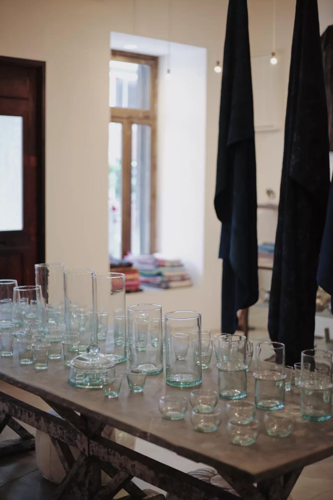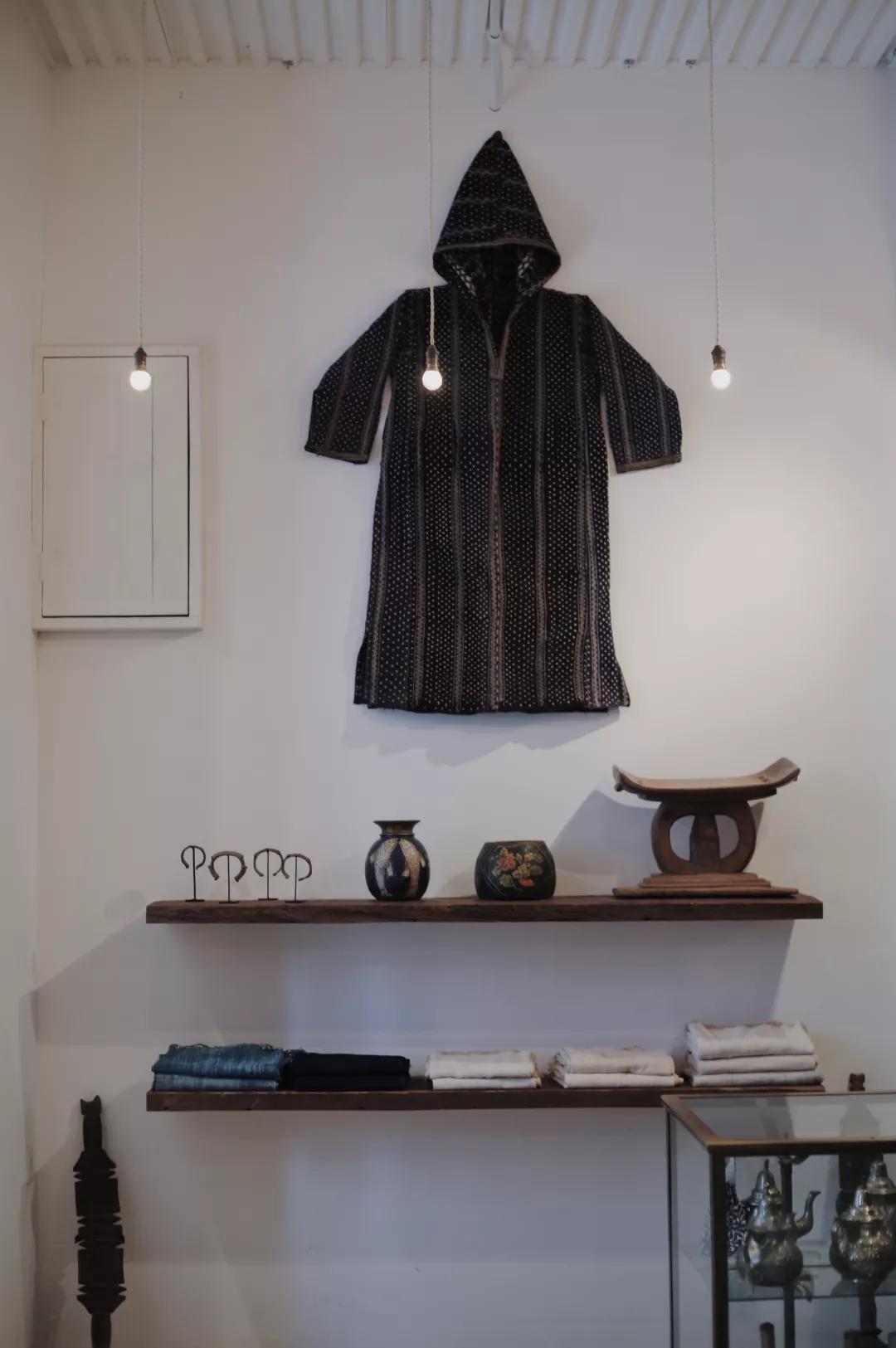 空間里迷人的老舊味道實在太吸引人,木桌上一水兒的玻璃器具,想著買一把花束插在里頭,應該會很好看。摩洛哥的杯子,剛果的掛毯,中非的竹籃,印度的木工藝,充滿異國情調(diào)的手工制品,就這樣看似隨意地擱置著,每一件都似會呼吸般充滿靈氣。