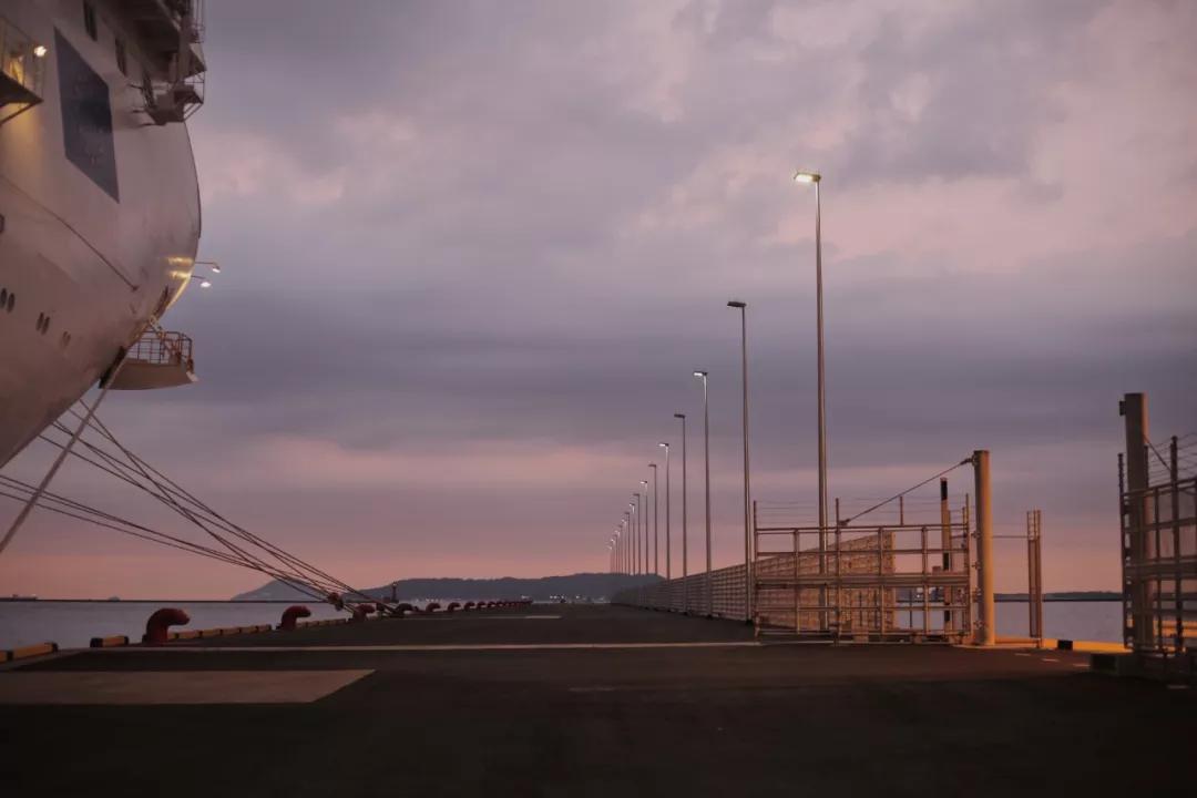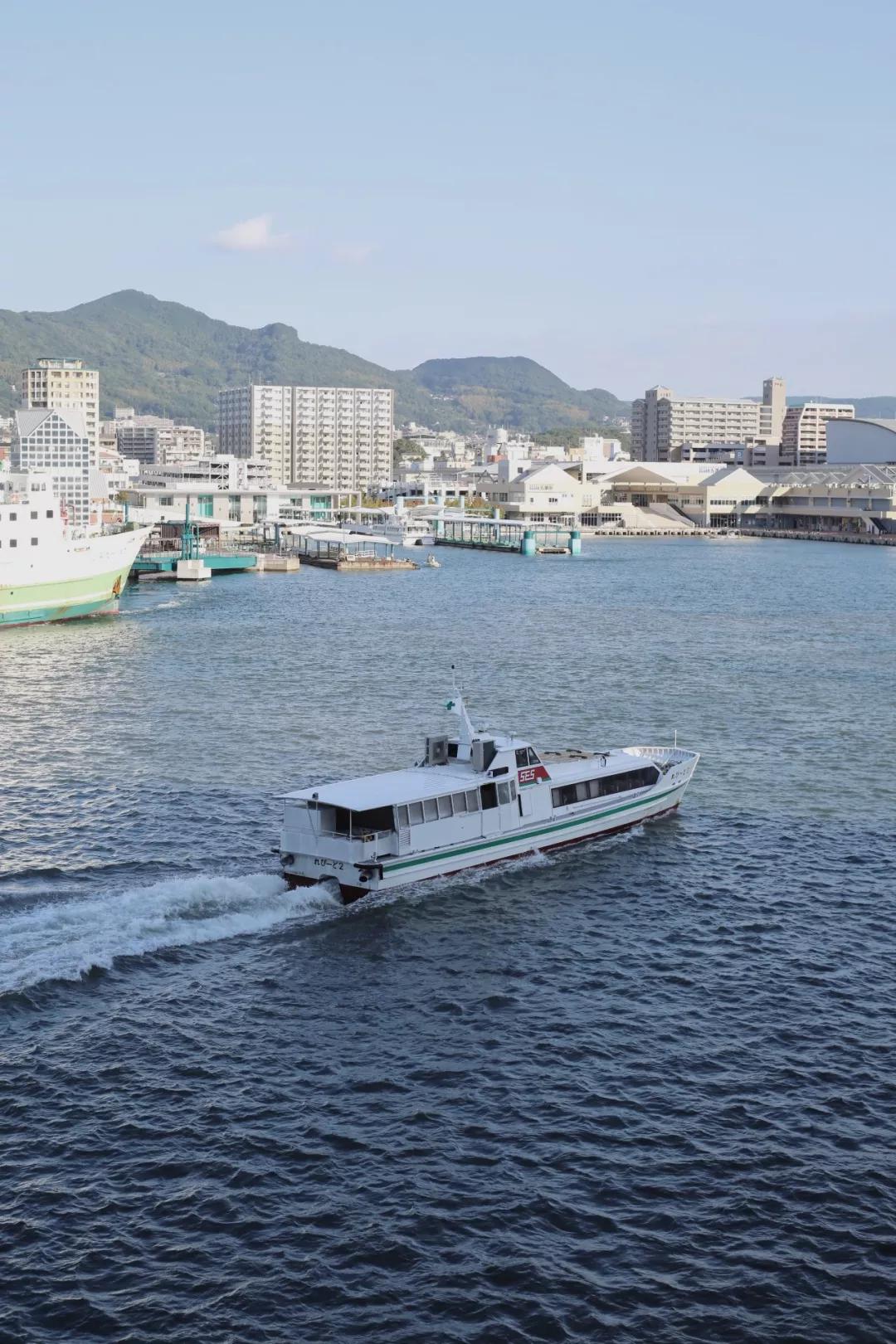 在太平洋上漂浮了兩日,我們抵達福岡博多港。集裝箱齊齊??吭诖a頭上,大小船只在水面平靜游弋,靠港貨輪發(fā)出低沉長鳴,清晨的港口已經(jīng)奏響忙碌的樂章。