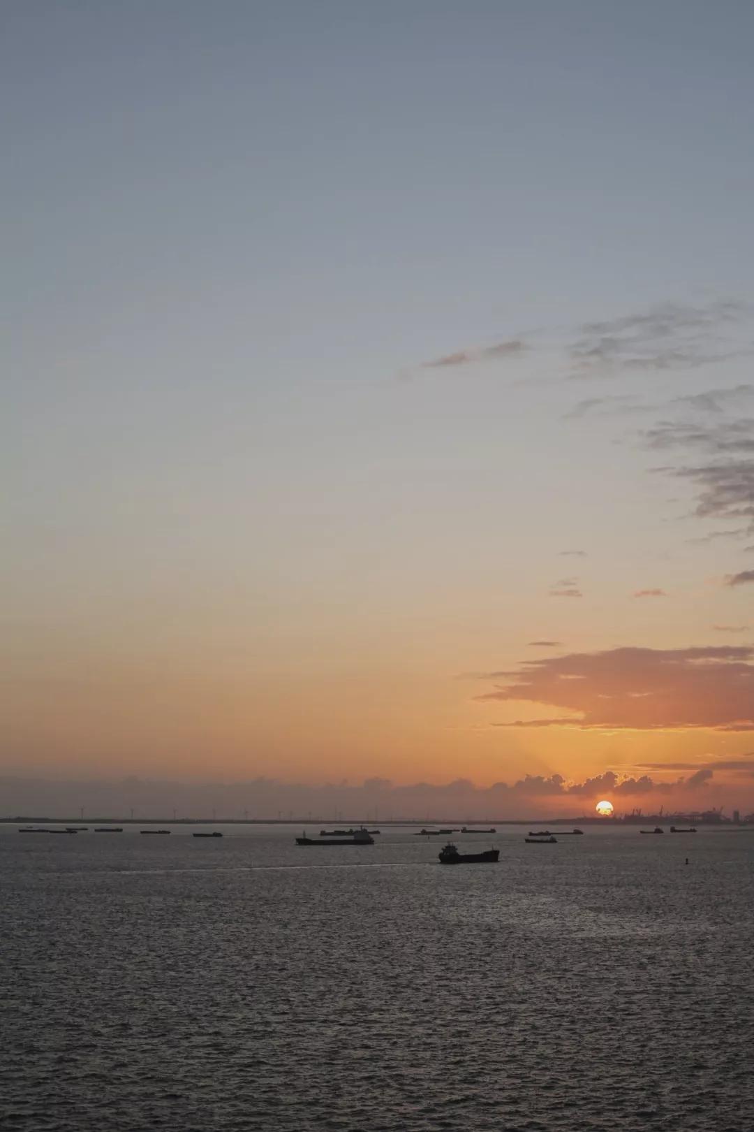 清晨的甲板安靜極了,大概前一晚喧鬧的人們正在酣睡,晨風吹得衣袂飛揚。天空中的黃暈已經(jīng)從沉睡中蘇醒,帶著不刺眼的光芒從飄渺的云霧里一點點伏起,天越來越亮。
