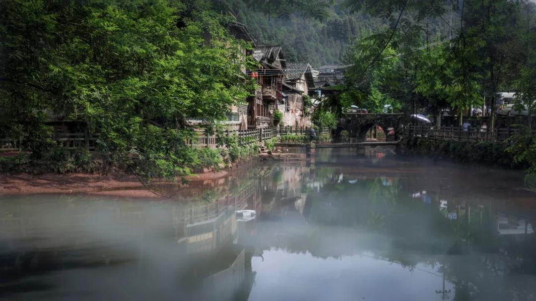 古鎮(zhèn)依山傍水,有著濃濃的田園風(fēng)光,至今還保留著許多明清時期的吊腳樓式建筑,街道主要是呈“井”字形布局,寓意“井中有水,水火不容”,以水制火,祈福古鎮(zhèn)平安。