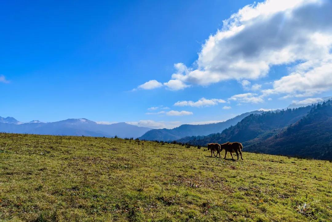 神木壘一年四季風(fēng)景秀麗,它不僅有藏族的美麗淳樸,你漫步其中,隨處可見散養(yǎng)于森林草地上的牛馬羊群,加上暖暖的時光,輕輕的風(fēng),那畫面極度舒適。