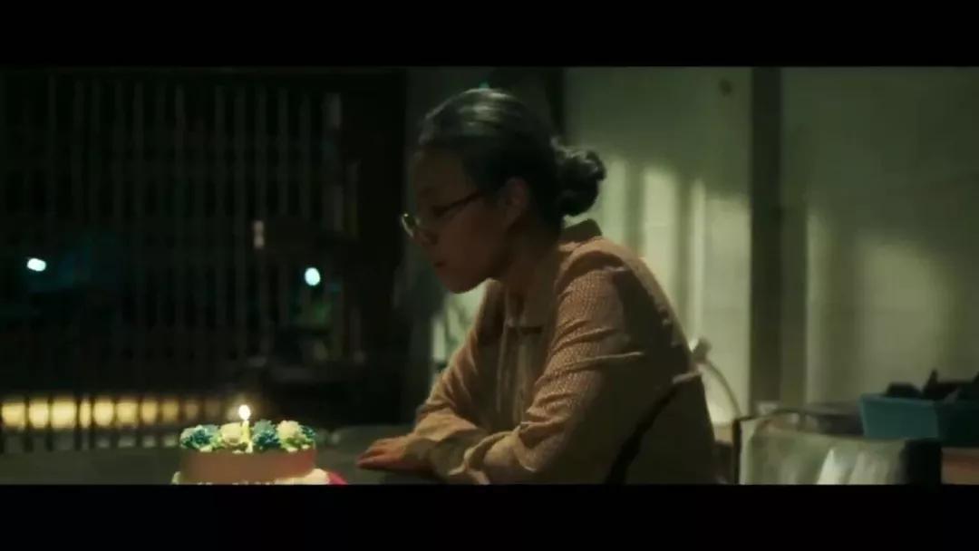 發(fā)完信息,母親一個(gè)人坐在桌前,陪著她的只有插好蠟燭的蛋糕。