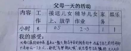 “調(diào)查父母的時(shí)間”這項(xiàng)特殊的作業(yè),讓很多孩子知道原來平時(shí)陪伴自己最久的是父母...
