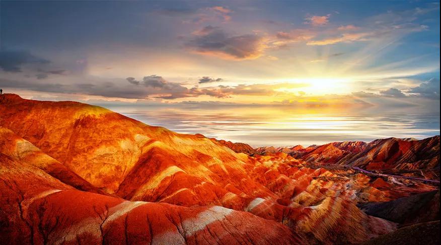 游玩過后前往張掖 [ 丹霞地質(zhì)公園 ] ,這里的自然景觀得天獨厚,是中國丹霞地貌發(fā)育最大最好、地貌造型最豐富的地區(qū)之一。景區(qū)還是張藝謀的電影《三槍拍案驚奇》、姜文執(zhí)導(dǎo)的電影《太陽照常升起》、知名電視劇《神探狄仁杰》的外景地,2005年11月由中國地理雜志社與全國34家媒體聯(lián)合舉辦的“中國最美的地方”評選活動中,當選為“中國最美的七大丹霞”之—,如果天氣晴好,在這里可以觀賞到一場唯美的落日盛宴。感受落日的余暉落在起伏的丘陵上,晚霞般的大地與落日交相輝映,見慣了城市中的鋼筋混凝土,此時不由的心神也會感到空曠了;
