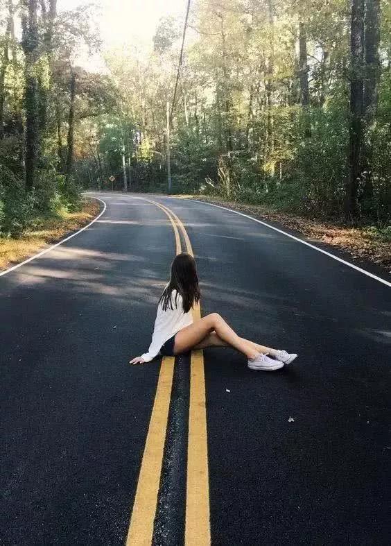 如果你正在自駕游的途中,路上看到一個很適合拍照的馬路,就可以順手將自己的行李箱拿出來,假裝坐在上面,想要拍出大長腿的妹子記住一定要伸!腿!