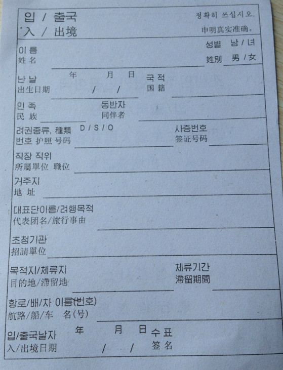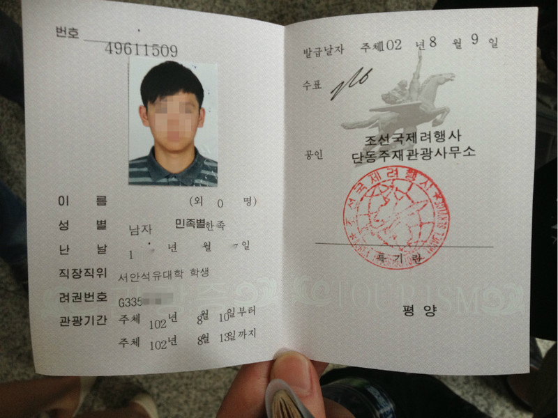 乘坐火車從丹東進入朝鮮,會在新義州站發(fā)放臨時旅游卡代替簽證,護照不留有朝鮮簽證。大部分旅行社也會要求游客至少提前15天報名。
