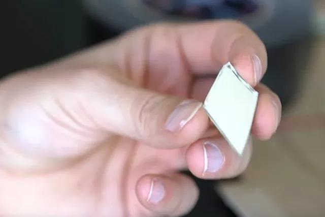 方法很簡單,找一塊最小的鏡子碎片(注意安全,最好把尖銳的邊緣磨平些),背面貼上雙面膠。