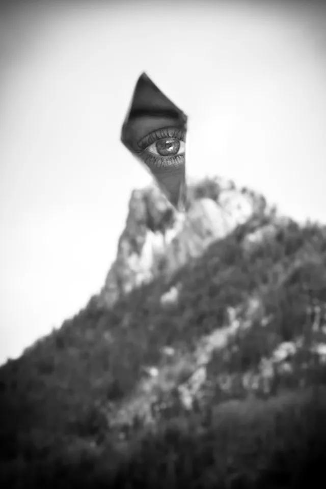 你也可以把窗戶(或車窗)擦干凈,把鏡子碎片貼在上邊,創(chuàng)造出“眼睛+風景”的蒙太奇鏡頭: