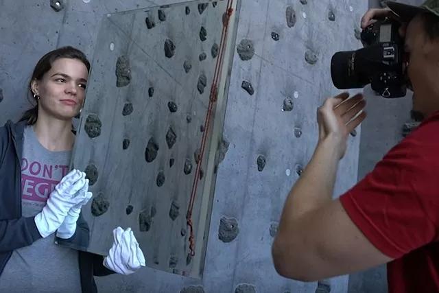 讓拍攝對象站在玻璃碎片“墻”前,攝影師在側(cè)方拍攝。調(diào)整攝影師和拍攝對象的站位,你可以拍出這樣的效果: