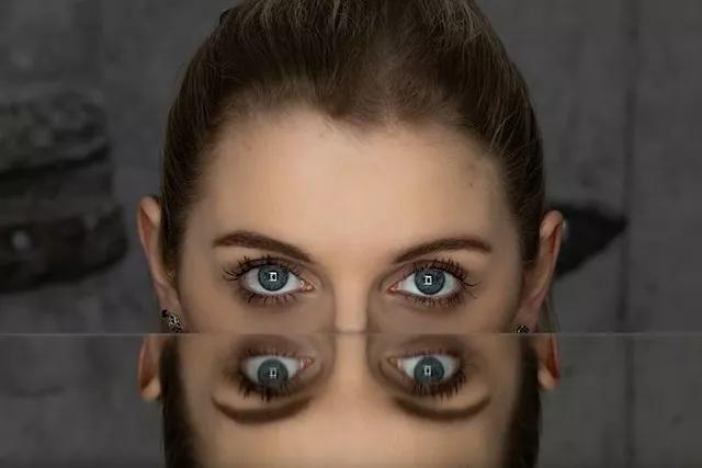 比如說,讓拍攝對象豎著拿鏡子,把鏡子垂直于地面地放在臉部中軸線上: