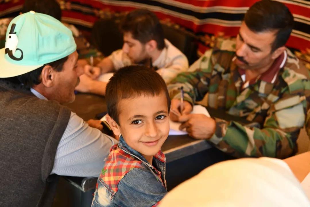 2018 年6月28日,在敘利亞首都大馬士革北部加拉蒙山區(qū)的杰拉吉爾鎮(zhèn)前的過(guò)境點(diǎn),返鄉(xiāng)難民辦理簡(jiǎn)單的登記、核驗(yàn)手續(xù)。