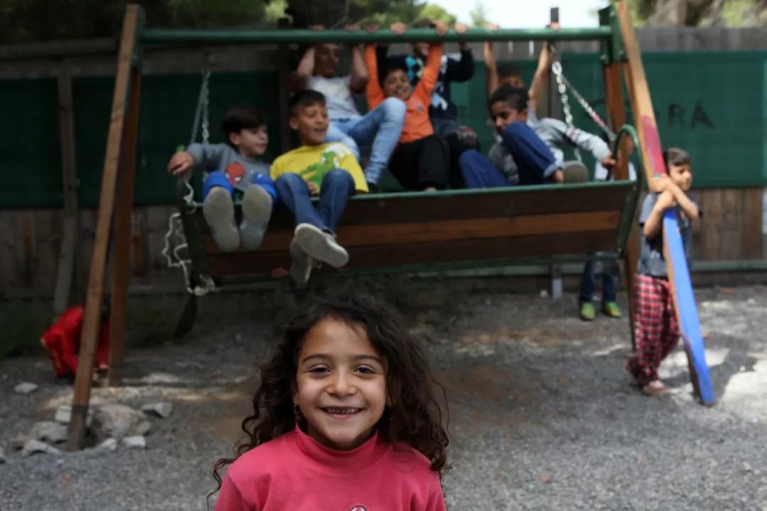 2018 年4 月12日,在希臘雅典以北約 86 公里處的里措納難民營(yíng),兒童在秋千上玩耍。歐盟委員會(huì)主管移民、內(nèi)部事務(wù)與公民事務(wù)的委員阿夫拉莫普洛斯 12 日在視察雅典附近一座難民營(yíng)時(shí)表示,歐盟將繼續(xù)幫助希臘、意大利等處于難民問(wèn)題前沿的國(guó)家。
