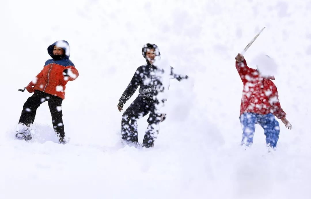 2019 年1月4日,在阿富汗喀布爾郊區(qū),孩子們?cè)谘┲型嫠?。阿富汗喀布爾迎?lái)2019年第一場(chǎng)雪。