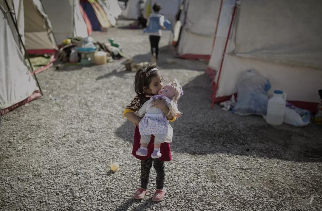2017 年11月15日,在伊朗克爾曼沙阿省的薩爾波勒扎哈卜,一個(gè)小女孩在帳篷外抱著玩具娃娃。據(jù)伊朗媒體15 日?qǐng)?bào)道,伊拉克與伊朗邊境地區(qū) 12 日晚發(fā)生的強(qiáng)烈地震已在伊朗震區(qū)造成 474 人死亡,另有 9388 人受傷。