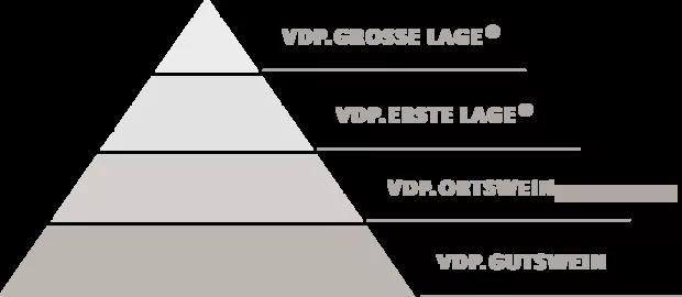 VDP酒莊使用著一套與德國(guó)官方葡萄酒分級(jí)同時(shí)存在,卻又完全獨(dú)立的分級(jí)系統(tǒng)。眾所周知,1971年頒布的德國(guó)官方葡萄酒分級(jí)以葡萄成熟度為標(biāo)準(zhǔn),但這個(gè)標(biāo)準(zhǔn)過(guò)于片面,難以區(qū)分酒的真實(shí)品質(zhì)。為了解決這個(gè)問(wèn)題,VDP建立了聯(lián)盟內(nèi)部的分級(jí)制度,最新的分級(jí)制度更新于2012年,以勃艮第的風(fēng)土理念為出發(fā)點(diǎn):
