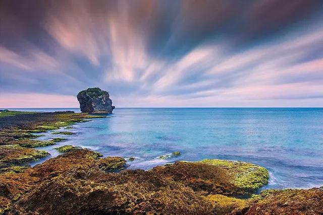 在進(jìn)行海景攝影時,照片的上半部分通常都是海水和天空;而最充滿變數(shù)的部分,就是前景。除了前文提到的碼頭、燈塔,隨處可見的礁石也是十分不錯的前景。