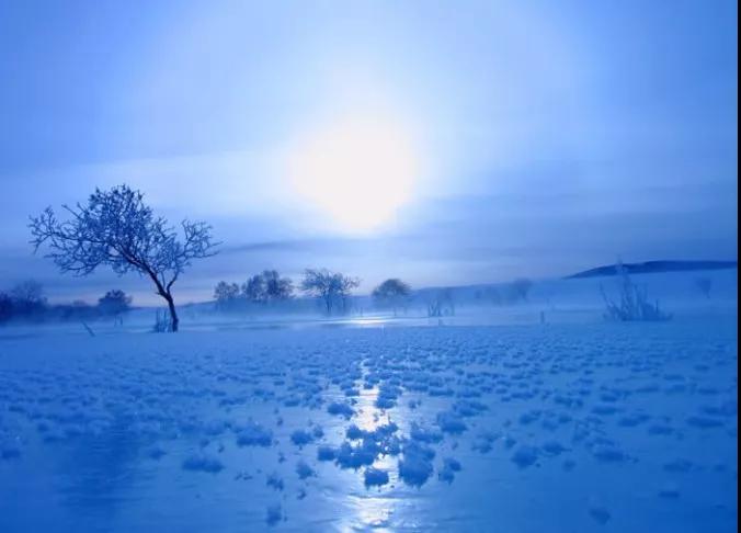 攝影師的這幅風(fēng)景作品以出色的冷調(diào)藍(lán)色而成功。照片中的每一處都透露著冬季、和平、安靜的意味。早晨,逆光中的冰原,結(jié)冰的河面上有很多不知名的小草小樹,清晨的寒霧籠罩著他們,雖然太陽被云層遮擋,但畫面卻呈現(xiàn)出一種神圣與美麗。