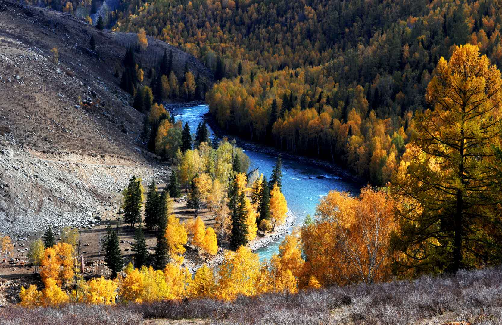 抵達(dá)烏魯木齊,游覽【五彩灘】,后前往布爾津,晚入住酒店休息;