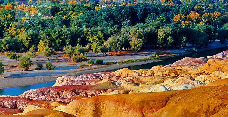 【五彩灘】(游覽時(shí)間60分鐘)五彩灘位于新疆北部,五彩灘又名五彩河岸,我國(guó)唯一的一條注入北冰洋的河流。五彩灘地貌特殊, 山勢(shì)起伏、顏色多變,其是由激猛的流河侵蝕切割以及狂風(fēng)侵蝕作用而共同形成。由于河岸巖層間抗風(fēng)化能力的強(qiáng)弱程度不一而形成了參差不齊的輪廓,這里的巖石顏色多變,且在陽(yáng)光照射下,巖石的色彩以紅色為主,間以綠、紫、黃、白、黑及過渡色彩,色彩斑斕、嬌艷嫵媚,因此被稱作“五彩河岸”、是“新疆最美的雅丹地貌”。