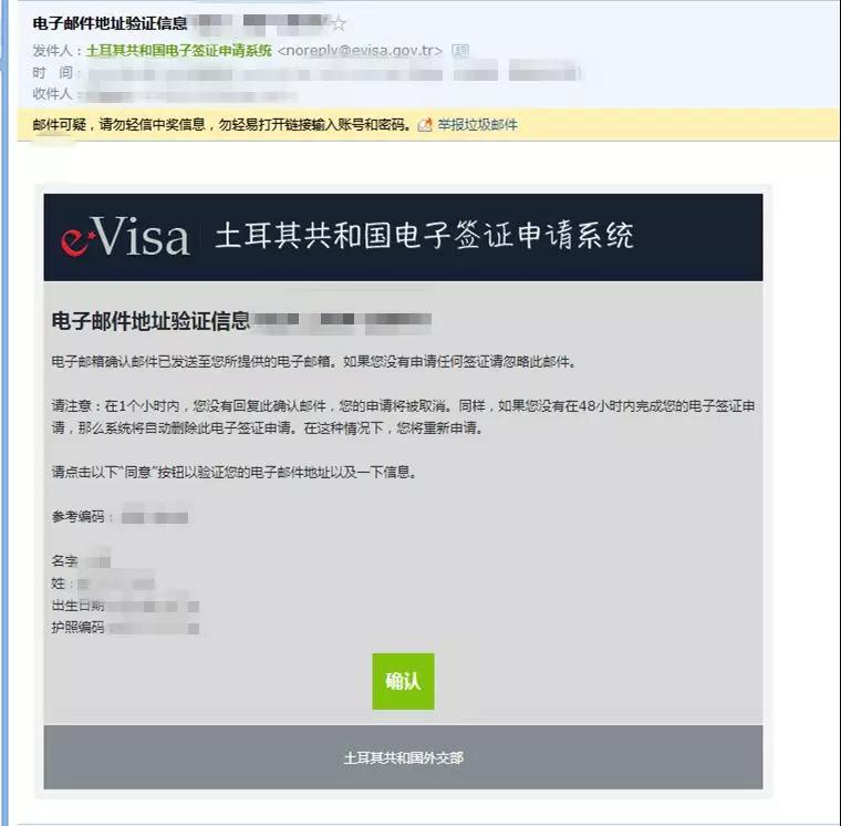 注:需要在1小時內(nèi)確認此郵件,并在48小時內(nèi)完成電子簽證的申請,否則簽證將被取消。