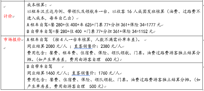 三、確定自駕游旅游產(chǎn)品價(jià)格