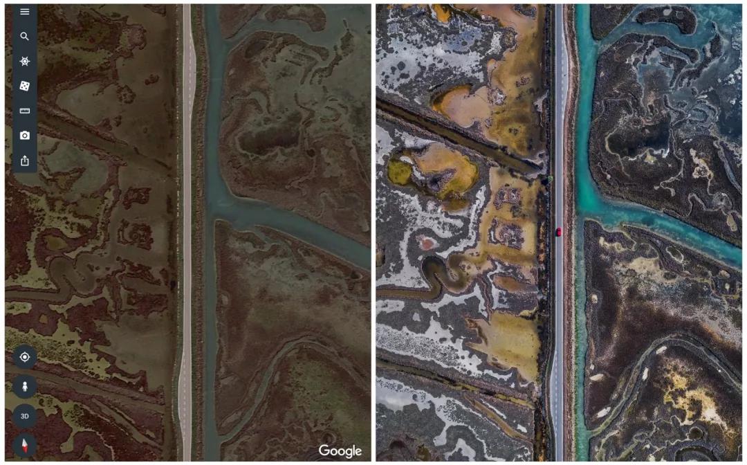 下列圖片中左圖為谷歌地球截取,右圖為實(shí)際拍攝。
