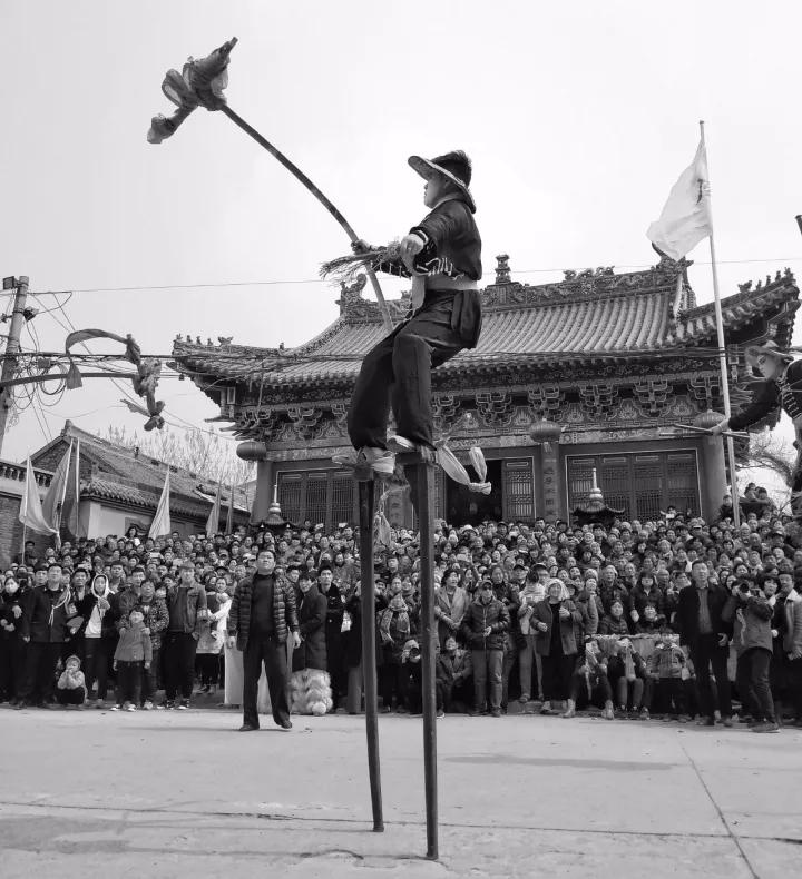 當我們所處的拍攝環(huán)境比較雜亂時,就可以利用黑白攝影來淡化。比如下面這張攝影作品,攝影師想要突出的主體是踩高蹺的表演者,但是周圍圍觀的人以及建筑物作為陪襯體又不能舍棄,只能利用黑白攝影淡化周圍環(huán)境的色彩來突出主體。