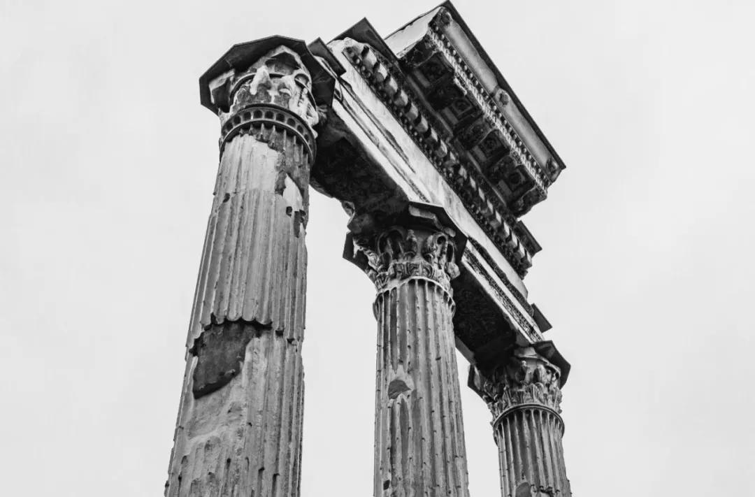 沒有了顏色,攝影作品中的線條、形狀、圖案等元素就變得更加明顯。例如下圖中的古羅馬圓柱,歷經(jīng)滄桑,柱子上的紋理都能清晰可見,甚至有了想要伸手去觸摸的沖動。