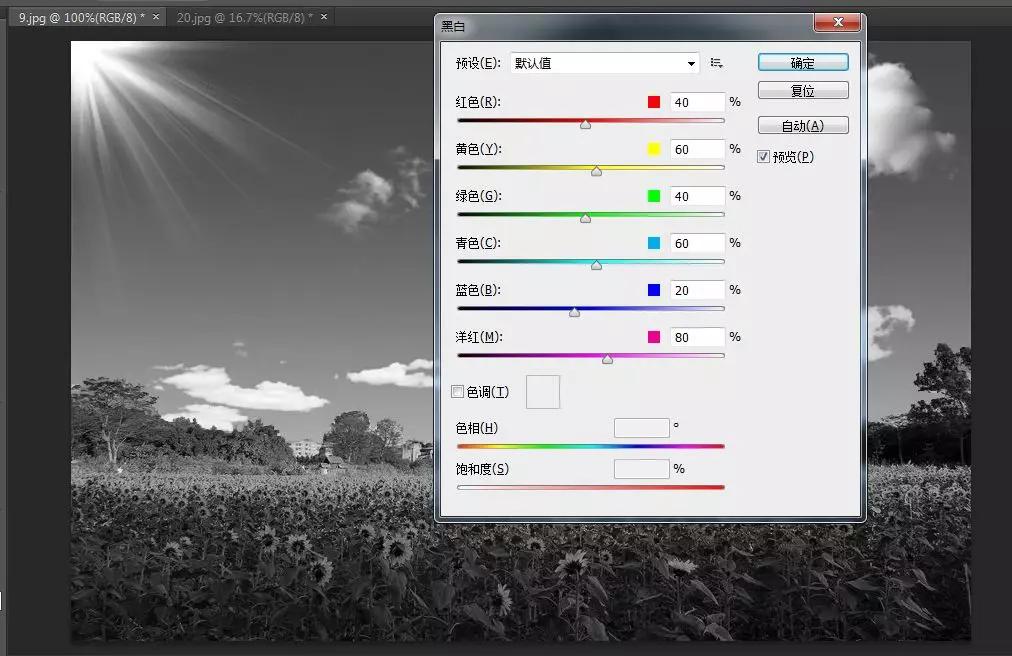 圖片導(dǎo)入進來之后,點擊左上角“圖像”——調(diào)整——黑白。之后還可以對各色調(diào)值、色相、飽和度進行調(diào)整,直到調(diào)整到自己想要的效果后再點擊確定保存即可。