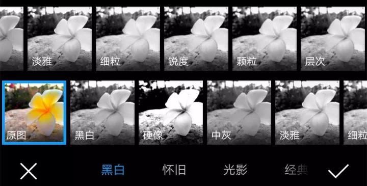 不會使用Photoshop也沒關(guān)系,手機自帶的美顏相機也有這項功能,找到“濾鏡”——“黑白”即可。
