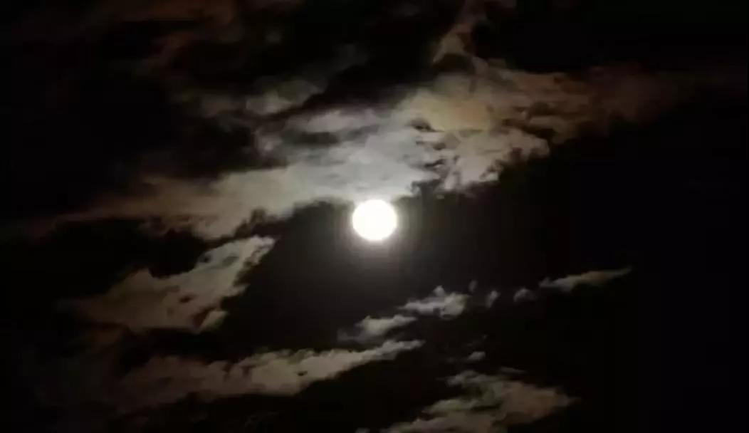 由于整體環(huán)境光的不足,相機(jī)在自動(dòng)曝光模式下很可能開(kāi)大光圈或調(diào)高快門,導(dǎo)致本來(lái)就挺亮的月亮過(guò)曝: