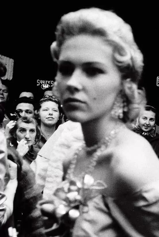他在擁擠的大街上,在暗淡的酒吧里,在熱鬧的集會(huì)中,甚至在行駛的汽車?yán)铮脧瓶ㄏ鄼C(jī)不搶眼的特點(diǎn)以及高速膠卷、廣角鏡頭和超焦距等便利,完全用現(xiàn)場光,大量搶拍所見到的一切。