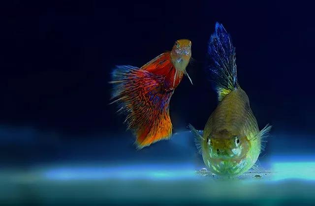 針對魚缸的魚兒,我們主要對魚兒主體進行布光,而不是背景。這樣背景就會完全欠曝接近純黑,而魚兒則可曝光正常,加上閃光相比自然光也會讓細節(jié)更加銳利、色彩更加飽和。