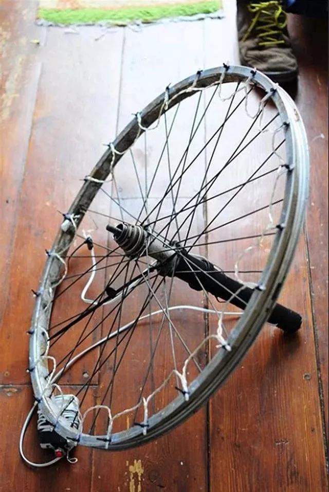 如果不想多花一筆錢購買專門的光繪復合光源,你也可以自己 DIY,比如說下圖,國外網(wǎng)友把 LED 小燈泡綁在自行車輪上制作的光繪器材“拿破侖”,拍出來的效果也是很有意思的呢!