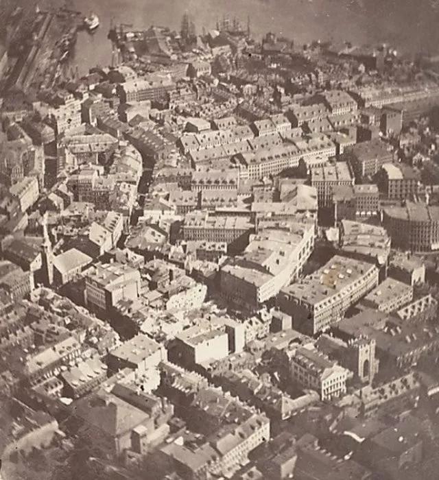 這張?jiān)?1860 年拍攝的照片對(duì)于航拍這項(xiàng)技術(shù)來(lái)說(shuō)有著開拓性的意義,它在 2000 英尺的高空中向我們展示了波士頓的景色。