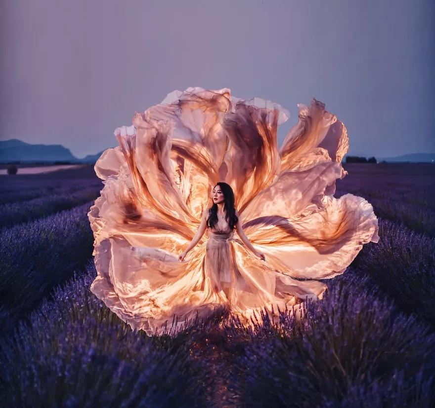 嘗試著打扮并拍攝穿著華麗裙裾、