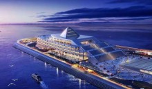 觀看【澳門銀河度假村金光鉆石秀】(世界最大銀鉆表演),銀河酒店鉆石大堂中央有一顆巨鉆, 表演開始鉆石在水幕中央緩緩旋轉(zhuǎn)升起,流光溢彩,震撼壯觀。