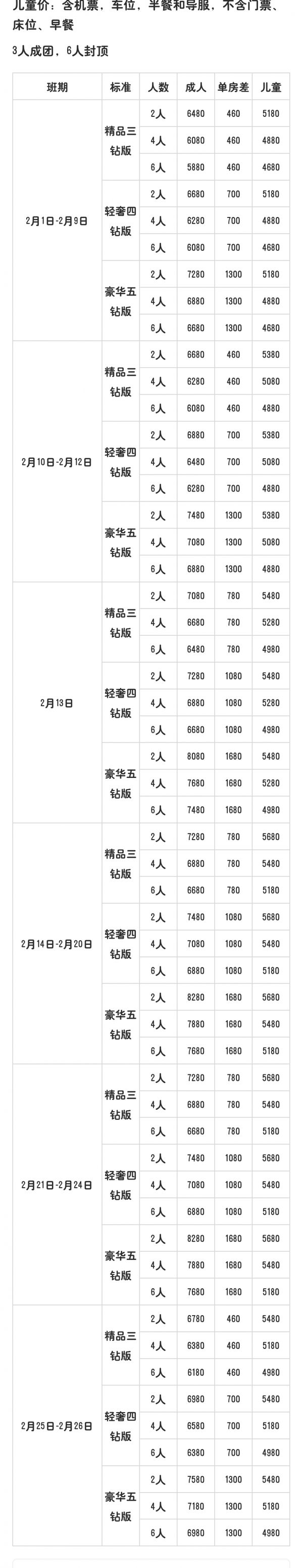 標(biāo)準(zhǔn)價(jià)格: 成人  7880 /人, 兒童  5680 /人