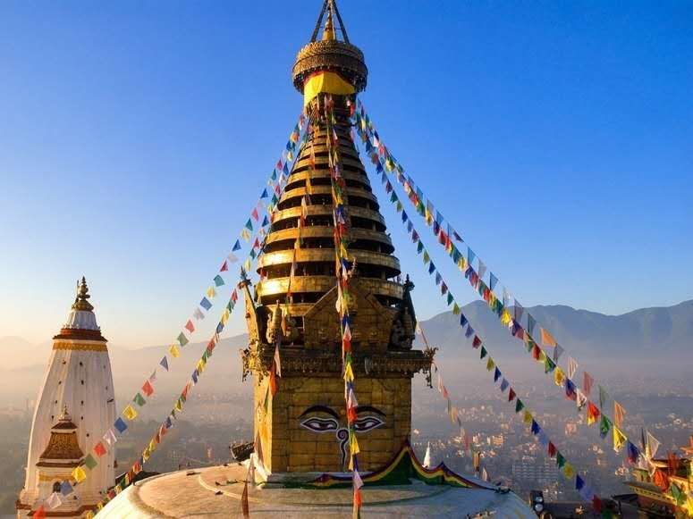 早餐后,乘車赴加德滿都(大約行車6小時),沿途欣賞尼泊爾鄉(xiāng)村美景;景點(diǎn):斯旺那布寺(Swayambhunath世界文化遺產(chǎn),俗稱“猴山”) 始建于2000多年前,是世界上最輝煌的佛教寺廟,來這里祭祀的有尼佤爾尼姑、藏族喇嘛、佛教及印度教之貴族朝圣者,也許斯旺那布塔是觀察尼泊爾各個宗教融洽相處的最佳地方,整體建筑古樸,味道十分濃郁,民房的窗飾極其繁復(fù),寺廟建筑的細(xì)部一樣精細(xì),寺廟、佛塔、銅飾等組合在一起,再加上成群的鴿子飛來飛去,成群的猴子蹦來蹦去,形成獨(dú)特的景觀;