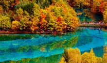九寨溝主溝呈“Y”字形,總長50余公里。溝中分布有多處湖泊、瀑布群和鈣華灘流等。水是九寨溝景觀的主角。碧綠晶瑩的溪水好似項鏈般穿插于森林與淺灘之間。色彩斑斕的湖泊和氣勢宏偉的瀑布令人目不暇接。