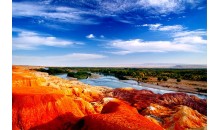 前往【禾木村】(游覽約 3 小時(shí))禾木村坐落在重山阻隔的一個(gè)大河谷里。禾木鄉(xiāng)無(wú)論從任何一個(gè)位置放眼所望,都是熱烈而明朗的——小河、木房、炊煙、樺林及禾木橋上放牧的人們。牧歸時(shí)分,白樺樹(shù)在夕陽(yáng)的余暉下閃耀著金色的光芒,折射出一幅幅優(yōu)美、恬靜、色彩斑斕的俄羅斯油畫(huà)。禾木橋景色如詩(shī)如畫(huà)。自費(fèi)游覽【五彩灘】(游覽約 1 小時(shí)),五彩灘一河兩岸,南北各異、國(guó)家AAAA級(jí)景區(qū),地貌特殊,長(zhǎng)期干燥地帶,屬于典型的彩色丘陵看其獨(dú)特的雅丹地貌,溝涯起伏,梳妝式的坡灘五顏六色,在夕陽(yáng)的照射下更加絢麗精彩。后乘專列前往伊寧。