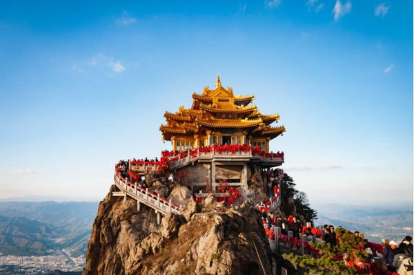 8:50-11:00 乘車前往欒川【老君山景區(qū)】(車程約2小時(shí)),相傳是道教始祖李耳(老子)的歸隱修煉之地,北魏時(shí)在山中建廟紀(jì)念,后來(lái)被封為“天下名山”,歷來(lái)香火旺盛。山中樹(shù)木茂盛,風(fēng)景如畫(huà),處處都能看到山泉。金秋時(shí)分,這里更是周邊地區(qū)賞紅葉的不二之選。雨后的老君山,云霧環(huán)繞在各個(gè)山峰中,猶如天上仙境。景區(qū)面積龐大,主要分為居中的老君山主景區(qū)、西部的追夢(mèng)谷景區(qū)和東部的寨溝景區(qū)。一般游客會(huì)用一天的時(shí)間游玩老君山主景區(qū),這也是整個(gè)景區(qū)開(kāi)發(fā)完善的區(qū)域。游覽【十里畫(huà)屏】這里既有山峰的剛,也有云霧的柔,讓人驚心動(dòng)魄,久久不能忘懷,是老君山的知名景觀之一。老君山內(nèi)綿延十里的穿云棧道都是如畫(huà)的美景,從而被稱為十里畫(huà)屏。放眼望去整個(gè)山上披綠掛紅,雄偉壯觀,游走中間,一步一景,景景如畫(huà),讓人如癡如醉?!?strong>老子文化苑】采用漢代建筑風(fēng)格,主體思想是“大道行天下,和諧興中華”。由漢闕、老君山照壁、金水橋、眾妙門(mén)、三重太極合和廣場(chǎng)、老子圣像等組成,能夠感受到濃厚的道家文化氣息?!?strong>金頂?shù)烙^群】處在高聳的群峰之巔。道觀群在陽(yáng)光的照射下,折射出耀眼的金光,如夢(mèng)如幻,恍若仙境。金頂?shù)烙^群包括兩座金頂、一座金殿以及道德府、鐘鼓樓等建筑;