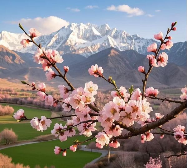 09:00-12:30  從塔縣出發(fā),一路經(jīng)塔莎古道,這是一條蜿蜒于喀拉昆侖山脈興都庫什山脈之間的隱秘古道前往杏花村,滿院的老杏樹迎著春風(fēng)盛開了,經(jīng)過一夜的小風(fēng)吹過,花瓣曼舞在陽光下太浪漫了,整個(gè)村子都是嬌艷欲滴的粉嫩色,讓你真正體驗(yàn)“牧童遙指杏花村”的畫面,在這暢游大半天,享受不一樣的南疆之春;這里的杏花,與別處截然不同。它們并非精心栽培的園林景致,而是擁有千年生存智慧的野生古樹。在海拔三千米以上的嚴(yán)酷環(huán)境中,它們依偎著流淌的冰川融水,根系緊緊抓住貧瘠的砂石,綻開出震撼人心的生命力;