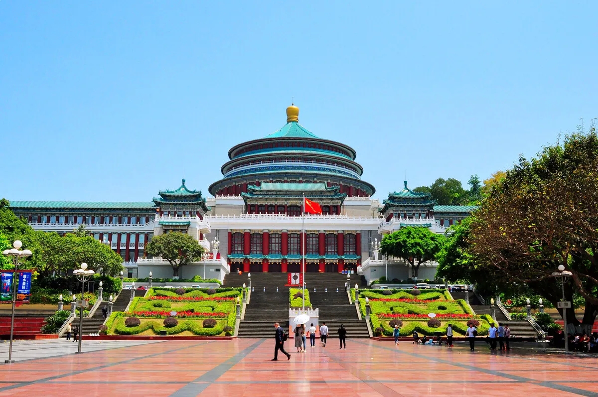 ● 打卡重慶地標外觀【重慶人民大禮堂】自由活動,重慶中國三峽博物館主體建筑正面與人民廣場、人民大禮堂保持三位一體。2020年11月18日,當選“巴蜀文化旅游走廊新地標”??傮w布局通過以東西走向的人民大禮堂對稱軸為主軸線,并以一個完形將人民廣場與博物館主體建筑聯(lián)系起來,主軸線上人民大禮堂、人民廣場、博物館三位一體,形成“三位一體”的四維效果。外地人來渝必去打卡地!